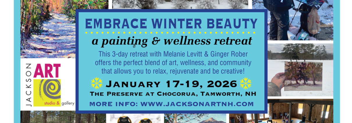 We are located in the White Mountains in Jackson, New Hampshire! Our studio is closed to indoor workshops but we are now offering outdoor sip & paint classes under our art tent or zoom & paint classes from the comfort of your home. Book a private party for a family reunion, girls night out, birthday party or corporate event! Choose from a wide selection of paintings.