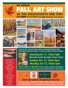 FALL POP-UP ART SHOW & SALE at the Wentworth Inn Tent, Oct 11,12,&13