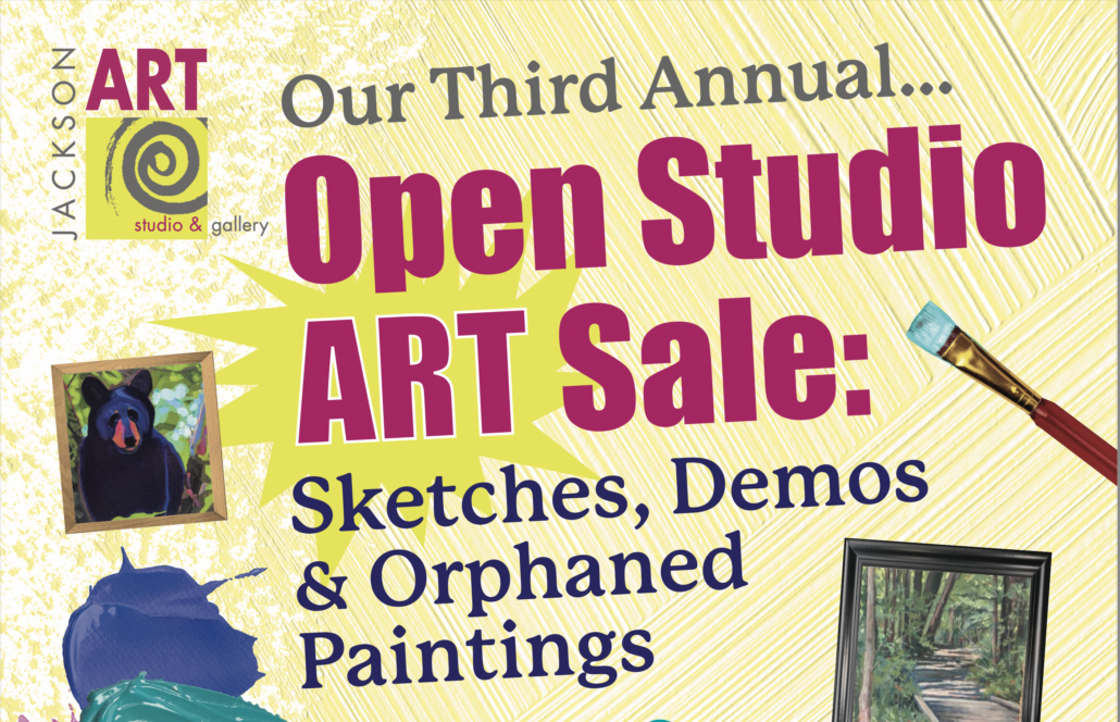 Join us at Jackson Art for our third annual studio sale with original artwork priced to go! The gallery artists will have a selection of original works, demo pieces. older works and orphaned paintings for sale at a fraction of the price. There will also be art supplies, frames and canvases.